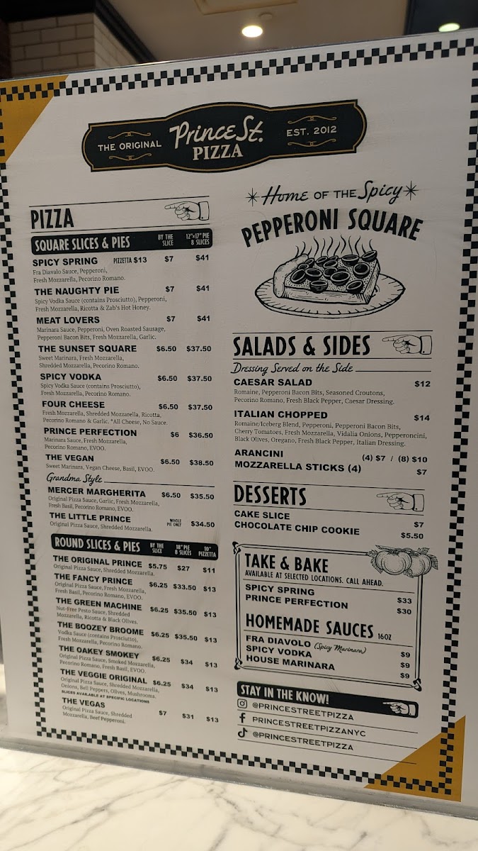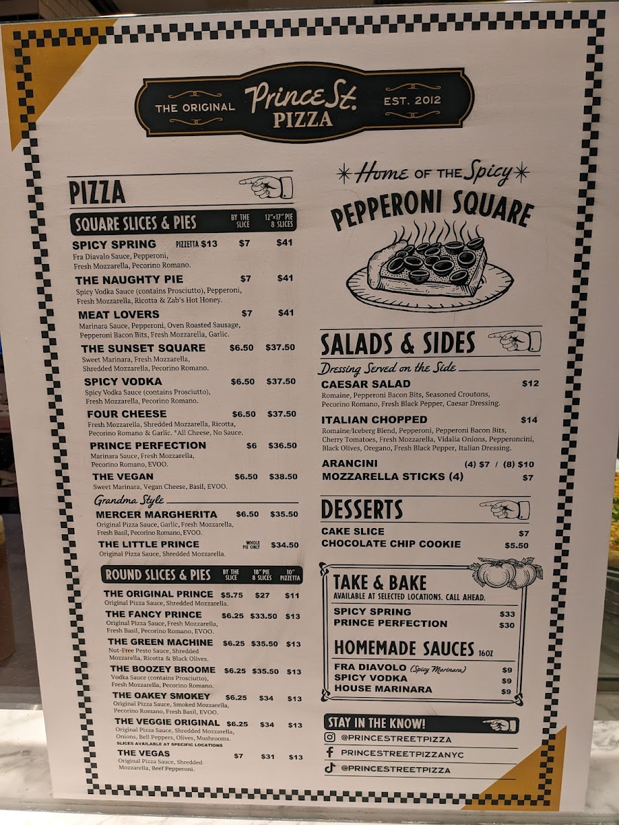 Welcome to Prince St. Pizza, a hidden gem located at 6915 S Durango Dr, Las Vegas. Known for its exceptional square pies, this pizzeria offers a delightful menu focused on quality and flavor. Each pie is meticulously crafted, featuring standout options like the Spicy Spring Pie and the Naughty Pie, with spicy vodka sauce and the enticing touch of hot honey. These generous 12x17 pies cater to groups, making them perfect for sharing—serving up to 34 people!